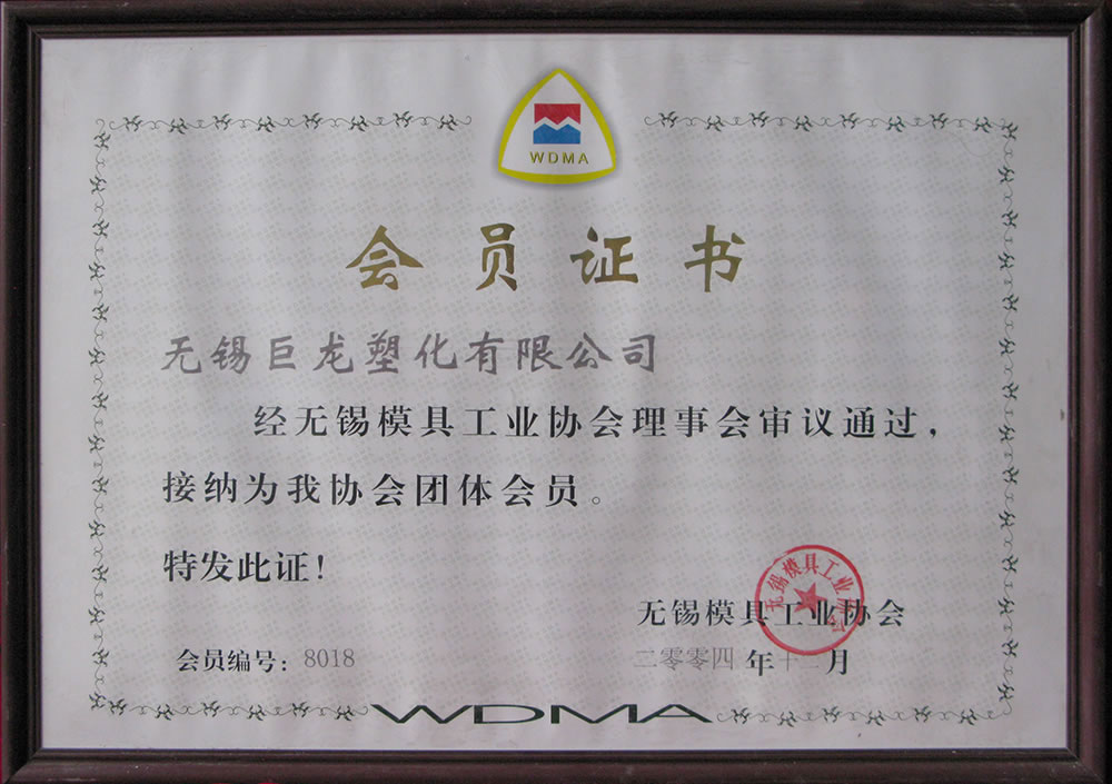 無錫模具工業協會會員證書